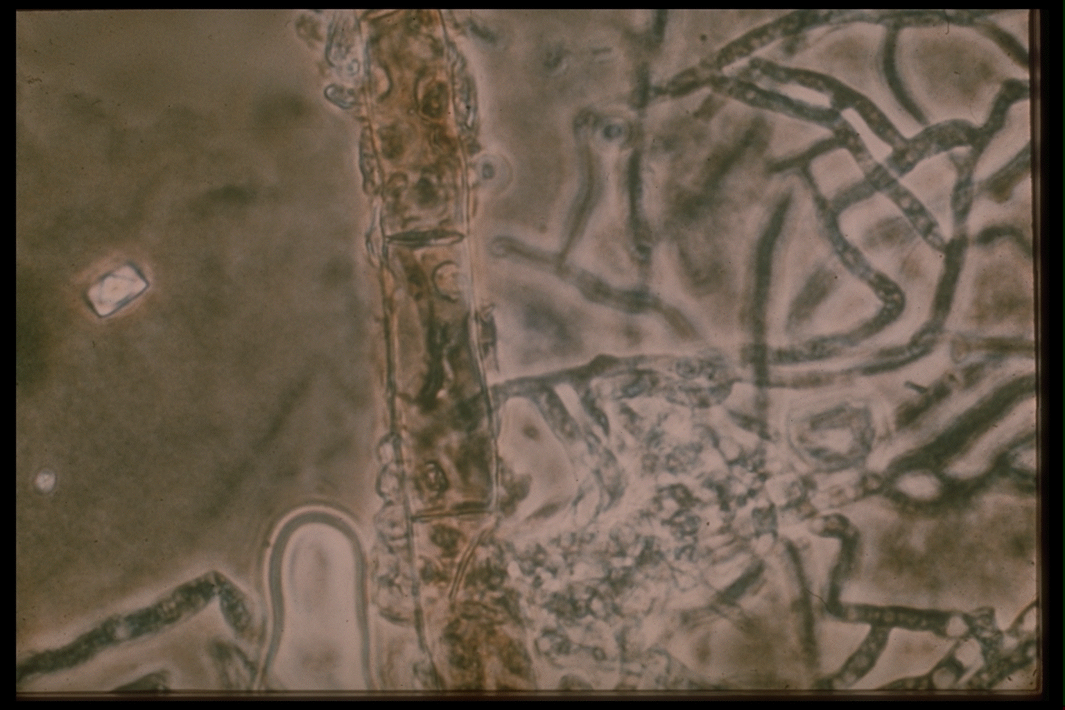 light micrograph of a fungus degrading hyphae